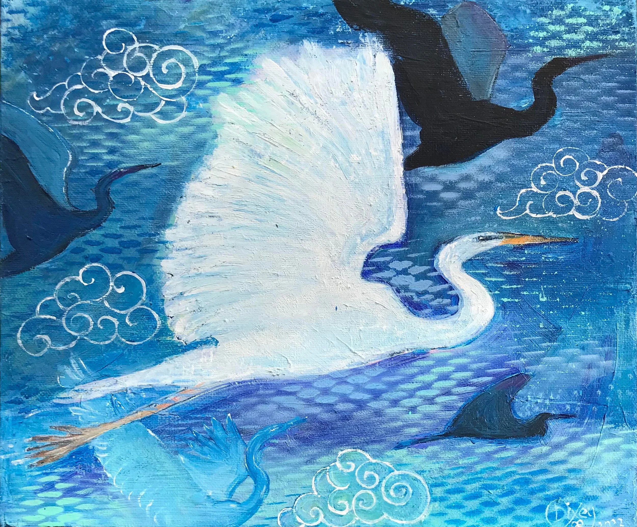 Herons, acrylic on canvas, 50 x 55cm, in private collection